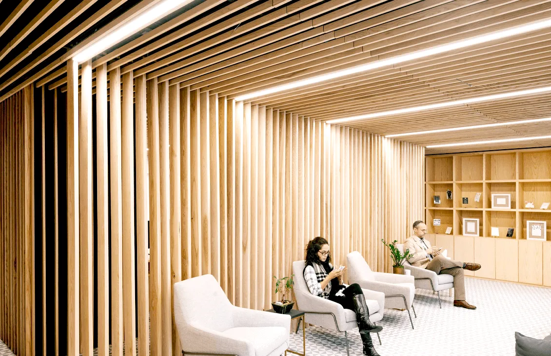 Кубообразный реечные потолок отличается своей геометрической строгостью и чёткостью линий, что делает его идеальным выбором для современных интерьеров. Благодаря возможности выбора любого цвета по шкале RAL, этот тип потолка легко адаптируется под цветовую палитру любого пространства.